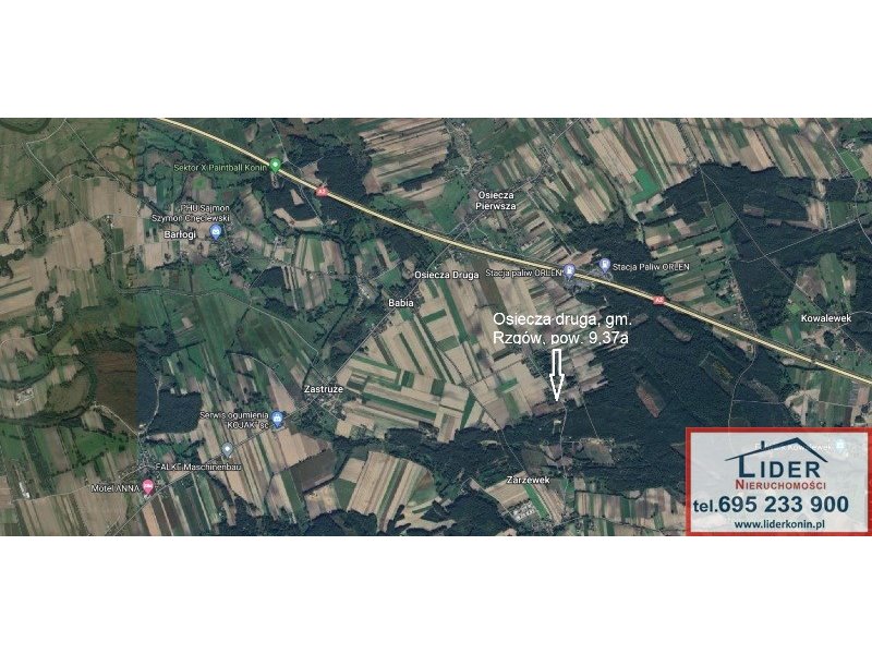 Sprzedam atrakcyjnie zlokalizowaną działkę budowlaną w miejscowości Osiecza Druga, gm. Rzgów (ok 13km od Konina) o powierzchni 9,37a. Dojazd do działki drogą asfaltową i część drogą gruntową. Media: woda, en. elektryczna. Działka położona w bliskiej odległości od Konina z doskonałym połączeniem komunikacyjnym, a jednocześnie położona w cichej i spokojnej lokalizacji. Bliskość terenów spacerowych / rowerowych powoduje, że to miejsce jest idealne do budowy domu dla osób aktywnych jak i szukających spokoju oaz ciszy. Cena 55 000 zł do negocjacji. Szczegóły oferty pod nr 695 233 900. Serdecznie zapraszam.
