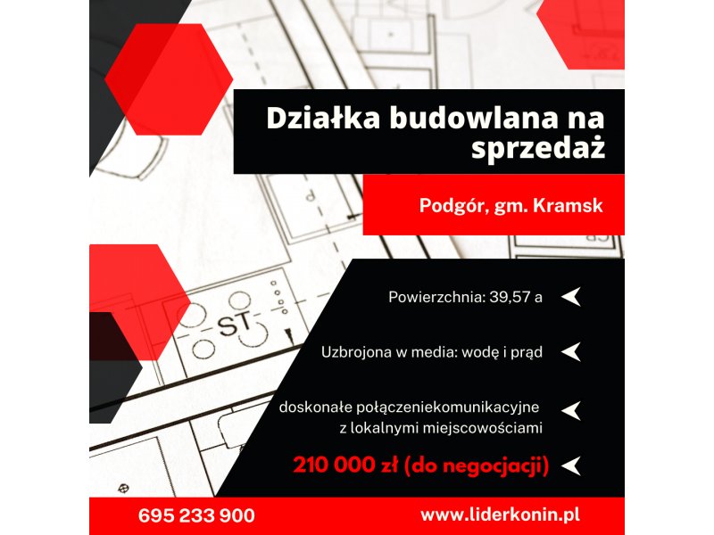 Oferujemy na sprzedaż przestronną działkę budowlaną o powierzchni 39,57a (3 957 m²), zlokalizowaną w malowniczej miejscowości Podgór, w gminie Kramsk. Działka jest uzbrojona w media: wodę oraz prąd, co stanowi istotne udogodnienie przy planowaniu inwestycji.