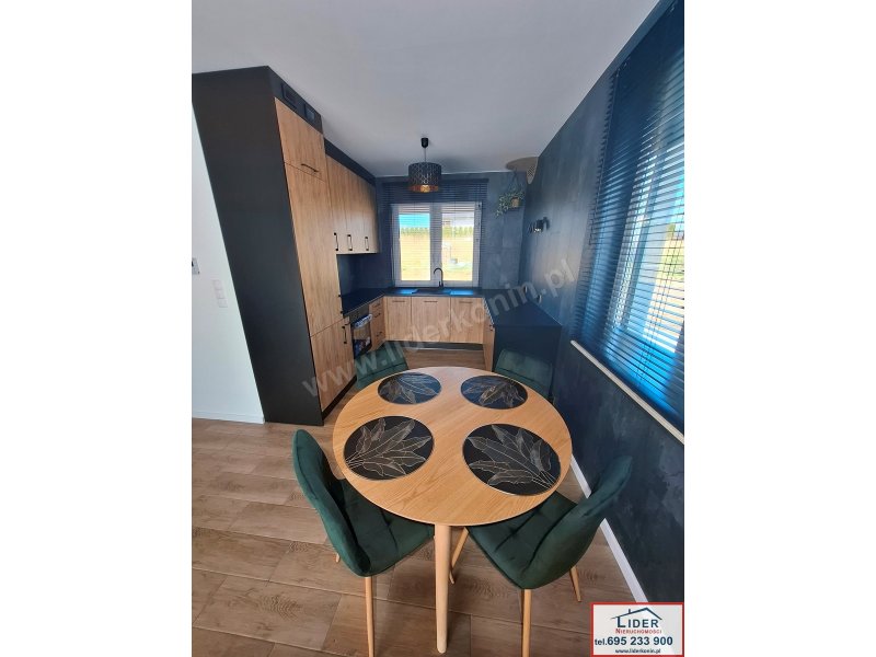 Wnętrze zaprojektowane przez architekta i wykończone materiałami najwyższej klasy. Dom jest w pełni wyposażony – wszystkie meble i sprzęty widoczne na zdjęciach pozostają w cenie (w tym zabudowa kuchenna z AGD, szafy wnękowe, narożnik, stół i krzesła). Wchodzisz tylko ze swoimi rzeczami osobistymi!